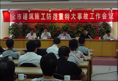 會(huì)議傳達(dá)了全省第二季度建筑施工防范重特大事故工作會(huì)議精神,對(duì)今年上半年我市建筑施工安全生產(chǎn)工作進(jìn)行總結(jié),并提出全市下半年建筑施工安全生產(chǎn)工作意見。市建設(shè)局副局長(zhǎng)陳淑雄就外出施工隊(duì)伍的安全生產(chǎn)管理情況作了通報(bào),市安監(jiān)站吳漢川副站長(zhǎng)還將近期拍到的施工現(xiàn)場(chǎng)圖片投影演示,對(duì)施工安全做法進(jìn)行了點(diǎn)評(píng)。
