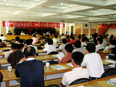 動員大會后,緊接著又舉辦燃氣安全知識講座,市燃氣協(xié)會肖烈光會長作了講話;市質(zhì)監(jiān)局葉揚和王繼功同志分別就液化石油氣儲配站特種設備安全管理、瓶裝液化石油氣充裝與銷售法規(guī)知識進行了詳細的輔導講解。