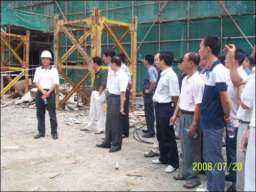 與會(huì)人員首先察看了天河國際公寓的事故現(xiàn)場,再到區(qū)政府多功能廳召開會(huì)議。龍湖區(qū)建設(shè)局副局長杜楚帆在現(xiàn)場通報(bào)了“7•18”事故。