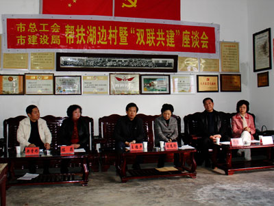 市總工會、市建設(shè)局領(lǐng)導(dǎo)班子和湖邊村黨員干部舉行座談
