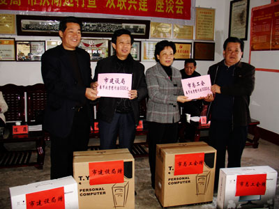 市人大副主任、市總工會主席劉遠(yuǎn)珍和市建設(shè)局局長王德聲向村捐贈電腦和春節(jié)慰問資金