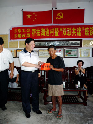 市建設(shè)局還到3位80多歲的老黨員家中,向他們發(fā)放了慰問金,帶去了政府的關(guān)懷和溫暖。市建設(shè)局來到湖邊小學(xué),履行“幫助三名學(xué)生直到完成學(xué)業(yè)”的莊嚴(yán)承諾,繼續(xù)向3名貧困學(xué)生發(fā)放助學(xué)金,當(dāng)了解到這三名學(xué)生順利升上中學(xué)而且成績都很不錯(cuò)的時(shí)候,局領(lǐng)導(dǎo)露出了開心的笑容,勉勵(lì)這三名學(xué)生繼續(xù)努力學(xué)習(xí)。