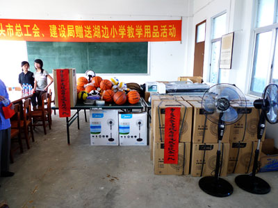 市建設(shè)局還與駐村單位市總工會(huì)一起,向湖邊小學(xué)捐贈(zèng)了一批風(fēng)扇和乒乓球桌等體育用品,給盛夏的學(xué)校帶去了一絲絲的清涼,滿足學(xué)生課間課余文體活動(dòng)的需要。