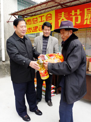 會(huì)后,市總工會(huì)、市建設(shè)局向湖邊村貧困村民發(fā)放大米和食油等物品,并向該村干部群眾致以新春的問候。