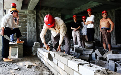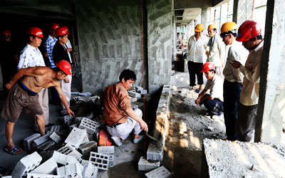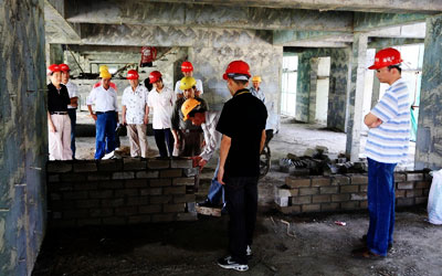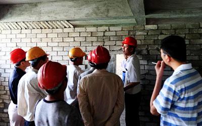 此次活動(dòng),將檢查墻體砌筑樣板塊和墻體砌筑工法培訓(xùn)活動(dòng)結(jié)合在一起?;顒?dòng)中,各墻體砌筑班組工人輪流操作,實(shí)地砌筑樣板墻,監(jiān)督工程師及施工管理負(fù)責(zé)人詳細(xì)講解了新型節(jié)能墻體材料的砌筑工法及如何采取措施防治墻體砌筑質(zhì)量通病,同時(shí)對(duì)前階段墻體砌筑存在的一些不規(guī)范現(xiàn)象進(jìn)行了實(shí)地檢查和講解??床僮鳌⒅v工法;觀實(shí)物、評(píng)不足;市質(zhì)監(jiān)站還要求由建設(shè)、監(jiān)理、施工單位組成培訓(xùn)考核小組,對(duì)各班組工人進(jìn)行培訓(xùn)考核。通過(guò)此次活動(dòng)促進(jìn)了該項(xiàng)目施工、管理人員技術(shù)水平的提高,切實(shí)提高了節(jié)能墻體工程的施工質(zhì)量。