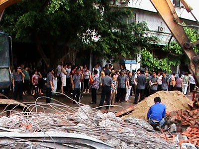 由于該“伯公廟”理事組人員無(wú)視法規(guī),占用新河溝及溝邊綠化帶違法擴(kuò)建,影響了城市市容和新河溝排水安全,試圖搶建造成違法既成事實(shí),影響極壞。龍湖區(qū)決定組織相關(guān)部門(mén)、單位對(duì)該處違法設(shè)施予以強(qiáng)制拆除,區(qū)專(zhuān)門(mén)成立了拆違工作領(lǐng)導(dǎo)小組,具體負(fù)責(zé)此次拆違工作的組織實(shí)施。由區(qū)政府楊時(shí)亮副區(qū)長(zhǎng)任組長(zhǎng),區(qū)建設(shè)局張義良局長(zhǎng)、市市政設(shè)施處郭郁林主任、珠池街道辦事處鄒漢湖主任任副組長(zhǎng)。區(qū)建設(shè)局、市市政設(shè)施處、珠池街道辦事處、丹華社區(qū)居委會(huì)及珠池派出所有關(guān)領(lǐng)導(dǎo)為成員。參加此次強(qiáng)制拆違行動(dòng)共98人,其中區(qū)城管執(zhí)法局48人、市市政設(shè)施處10人、珠池街道及丹華社區(qū)居委會(huì)15人、其他工作人員25人。行動(dòng)前,拆違工作領(lǐng)導(dǎo)小組就拆違任務(wù)、職責(zé)分工、拆違時(shí)間、人員安排、雇傭設(shè)備等事項(xiàng)精心部署,充分考慮安全保障、應(yīng)急預(yù)案。24日上午8時(shí),當(dāng)拆違隊(duì)伍到達(dá)現(xiàn)場(chǎng)時(shí),發(fā)現(xiàn)丹陽(yáng) “伯公廟”理事組人員發(fā)動(dòng)一班老年人占據(jù)施工現(xiàn)場(chǎng),試圖阻止拆違工作。拆違隊(duì)伍迅速各就各位,耐心勸說(shuō)該群老年人離開(kāi)施工現(xiàn)場(chǎng),并拉起人墻警戒。拆違隊(duì)伍克服暴雨淋、烈日曬,一直堅(jiān)持施工,隨著挖掘機(jī)、破碎機(jī)的轟鳴聲,現(xiàn)場(chǎng)違法搭建的磚墻、地面鋪設(shè)的鐵鋼板、鋼筋以及新河溝里的鋼管鋼筋、水泥樁、水泥墩被一一拆除、拔起,各種拆除物被清理干凈,綠化帶又重新種上了樹(shù)木。市城管執(zhí)法局也派員現(xiàn)場(chǎng)督導(dǎo),并聯(lián)系汕頭電視臺(tái)“今日視線(xiàn)”欄目現(xiàn)場(chǎng)采訪(fǎng)報(bào)道。
