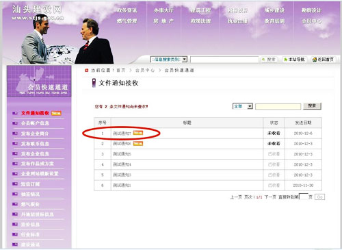 1、在后臺(tái)系統(tǒng)中點(diǎn)擊“文件通知接收”欄目(見(jiàn)圖3)。