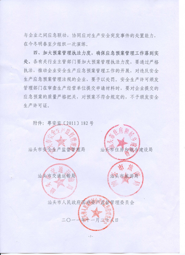 轉(zhuǎn)發(fā)關(guān)于加強(qiáng)行業(yè)安全生產(chǎn)應(yīng)急預(yù)案管理工作的通知汕安監(jiān)管[2011]227號(hào)