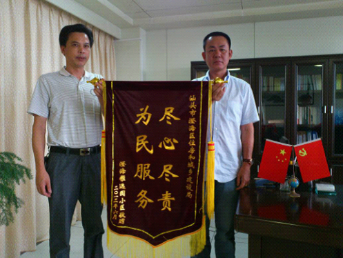 由于此事處理及時(shí)得當(dāng),雅逸園小區(qū)住戶都感到十分滿意,特將一面“盡心盡責(zé),為民服務(wù)”的錦旗贈(zèng)送澄海區(qū)住建局。