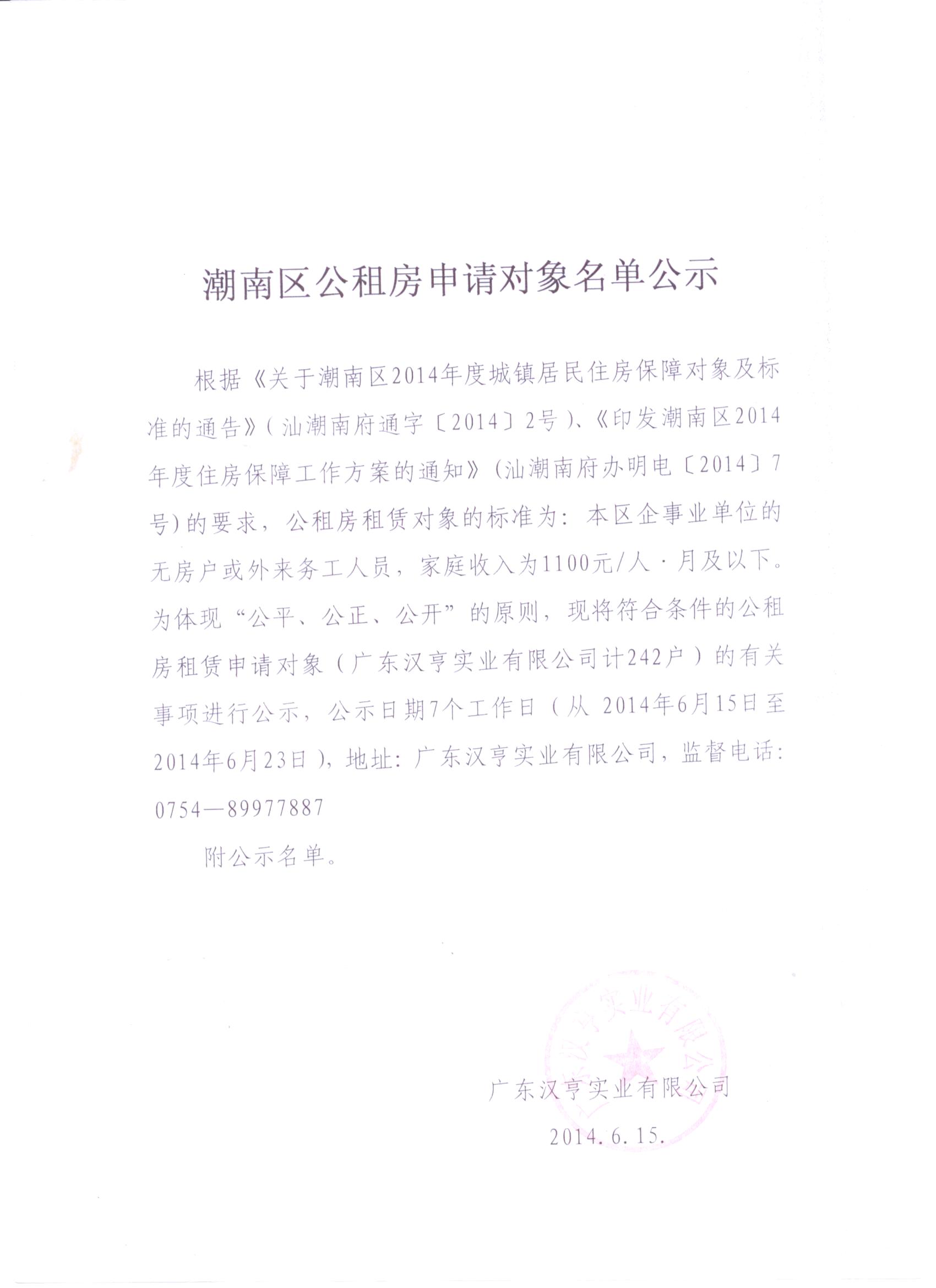 汕頭市潮南區(qū)2014年公租賃住房入住對象明細表.xls