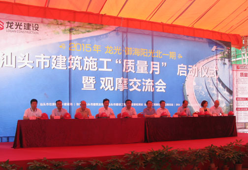 瀏覽次數(shù):12129月2日, 市住建局在“龍光御海陽(yáng)光北一期”項(xiàng)目建筑工地召開汕頭市2015年建筑施工“質(zhì)量月”啟動(dòng)儀式暨觀摩交流會(huì)。本次活動(dòng)由龍光地產(chǎn)公司、龍光工程建設(shè)有限公司承辦。省住建廳質(zhì)安處、市住建局領(lǐng)導(dǎo),市質(zhì)監(jiān)站、市安監(jiān)總站、市建筑業(yè)協(xié)會(huì)、高新區(qū)建設(shè)局、保稅區(qū)公共事業(yè)局、各區(qū)縣住建局、質(zhì)監(jiān)站、安監(jiān)站、部分施工、監(jiān)理企業(yè)共300多人參加活動(dòng)。會(huì)上,龍光地產(chǎn)公司汕頭區(qū)域總經(jīng)理肖丹女士致歡迎詞,龍光工程建設(shè)有限公司負(fù)責(zé)人就工程質(zhì)量管理做交流經(jīng)驗(yàn)發(fā)言,市建筑協(xié)會(huì)會(huì)長(zhǎng)宣讀倡議書;市住建局黨組成員、總工程師總結(jié)我市今年以來建筑施工質(zhì)量管理工作,并部署下階段工作; 省住建廳質(zhì)安處孫寶國(guó)副處長(zhǎng)作指導(dǎo)講話;市住建局黨組書記、局長(zhǎng)裴慶科宣布“汕頭市2015年‘質(zhì)量月’正式啟動(dòng)”。
