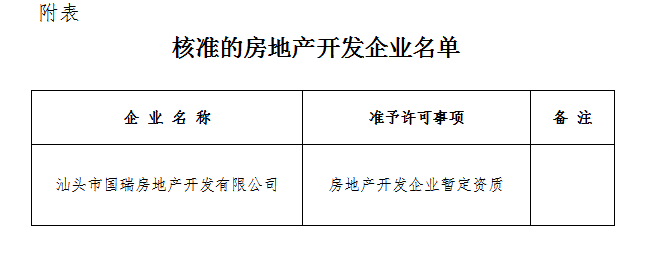 關(guān)于房地產(chǎn)開發(fā)企業(yè)資質(zhì)核準(zhǔn)結(jié)果的公告汕住建公告〔2016〕31號(hào)
