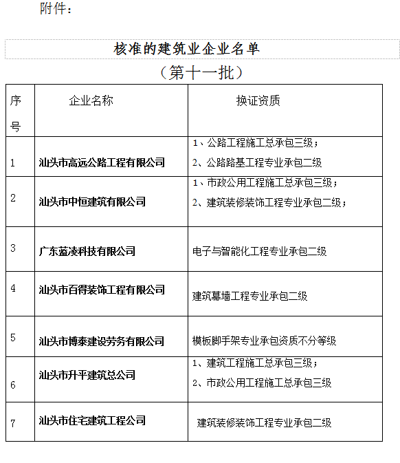 建筑業(yè)企業(yè)資質(zhì)換證結(jié)果公告(第十一批)汕住建公告〔2016〕29號(hào)