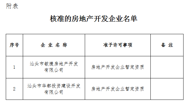 根據(jù)《中華人民共和國行政許可法》、《中華人民共和國城市房地產(chǎn)管理法》和有關房地產(chǎn)開發(fā)企業(yè)資質(zhì)管理規(guī)定,現(xiàn)將經(jīng)我局審查核準的房地產(chǎn)開發(fā)企業(yè)名單予以公布(見附表)。