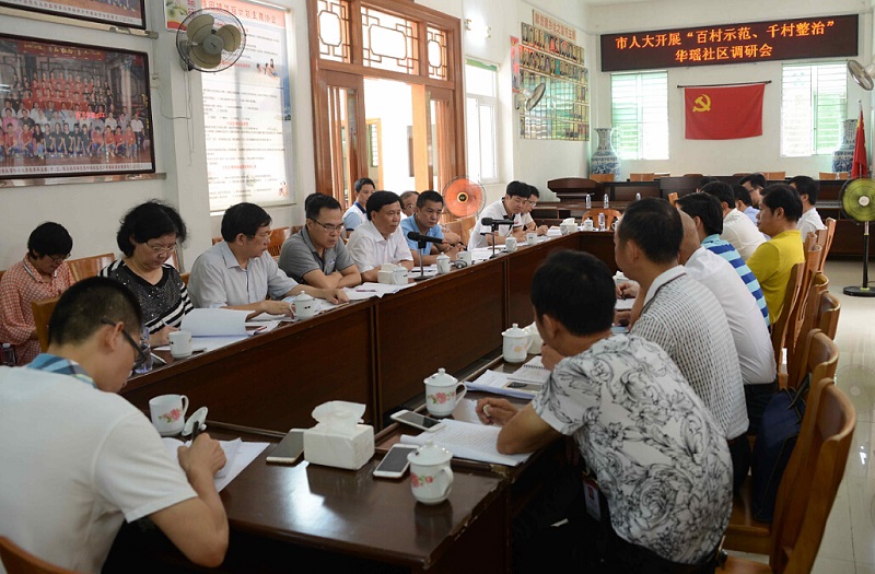 調(diào)研組一行實地察看了華瑤社區(qū)埔腳洋、華新西片、老寨等住宅區(qū)以及社區(qū)公共服務站,深入了解社區(qū)推進人居生態(tài)環(huán)境整治、規(guī)劃建設示范村進展情況,隨后召開座談會,聽取工作匯報,研究推進相關工作。