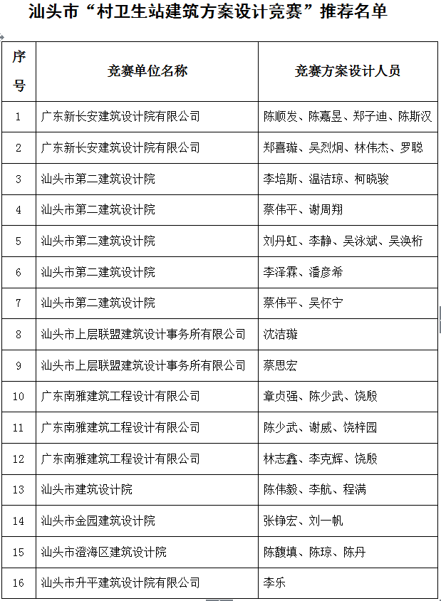 附件:汕頭市村衛(wèi)生站建筑方案設(shè)計(jì)競(jìng)賽的推薦名單