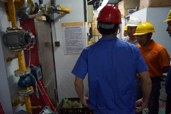 集商業(yè)、餐飲、娛樂(lè)、寫(xiě)字樓為一體的大型商業(yè)綜合體,其消防安全管理尤其重要。此次管道燃?xì)獍踩珯z查主要是針對(duì)工商用戶(hù)用氣及報(bào)警器、調(diào)壓柜、流量計(jì)、緊急切斷閥、法蘭連接處等設(shè)備使用情況。經(jīng)檢查,燃?xì)庠O(shè)施運(yùn)行總體良好,但也發(fā)現(xiàn)了個(gè)別問(wèn)題:F16控制中心報(bào)警器未粘貼公司報(bào)修電話(huà)、F16調(diào)壓柜上方用于裝卸的鐵繩在調(diào)壓柜安裝完畢后未及時(shí)拆除、卜蜂蓮花一些餐廳廚房報(bào)警器油污較嚴(yán)重問(wèn)題,均當(dāng)場(chǎng)要求整改。