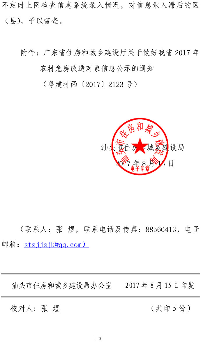 轉(zhuǎn)發(fā)省住建廳關(guān)于做好2017年農(nóng)村危房改造對象信息公示的通知汕住建通【2017】202號