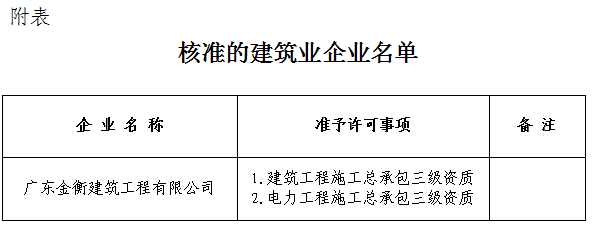 根據(jù)《中華人民共和國行政許可法》、《中華人民共和國建筑法》和有關(guān)建設(shè)工程企業(yè)資質(zhì)管理規(guī)定,現(xiàn)將經(jīng)我局審查核準的建筑業(yè)企業(yè)名單予以公布(見附表)。