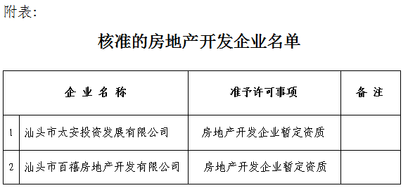 關(guān)于房地產(chǎn)開發(fā)企業(yè)資質(zhì)核準(zhǔn)結(jié)果的公告汕住建公告〔2017〕 54 號(hào)