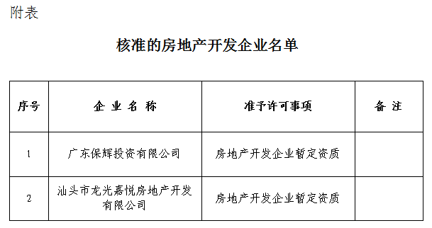 關(guān)于房地產(chǎn)開發(fā)企業(yè)資質(zhì)核準(zhǔn)結(jié)果的公告 汕住建公告〔2017〕59號
