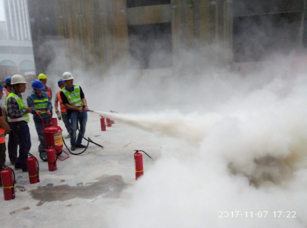 培訓(xùn)會上,結(jié)合近幾年建筑工地的火災(zāi)事故類型向參訓(xùn)人員詳細講解了什么叫火災(zāi)、遇到火災(zāi)怎么辦、如何報火警、火場逃生自救等消防常識,并就如何查改火災(zāi)隱患、如何處置初期火災(zāi)、如何組織引導(dǎo)人員疏散等問題進行了詳盡說明,并于現(xiàn)場示范講解了滅火器的使用方法、注意事項。隨后,所有人員于現(xiàn)場進行了干粉滅火器的實地操作滅火演練及應(yīng)急逃生演練。