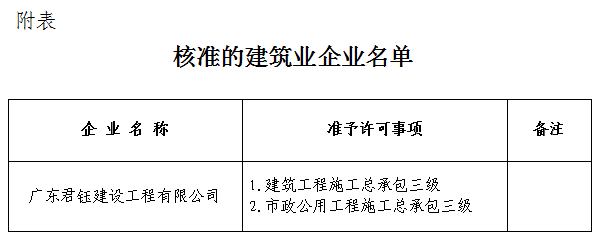 關(guān)于建筑業(yè)企業(yè)資質(zhì)核準(zhǔn)結(jié)果的公告汕住建公告〔2018〕3號(hào)