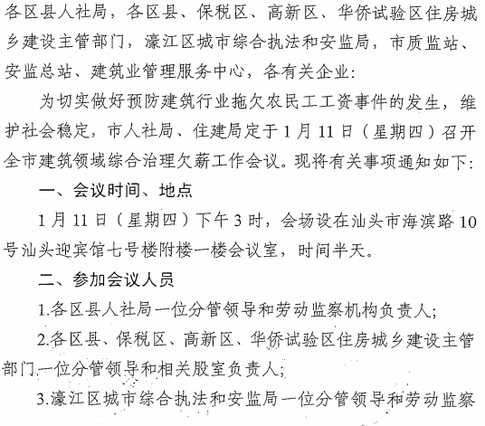 關(guān)于召開全市建筑領(lǐng)域綜合治理欠薪工作會議的通知