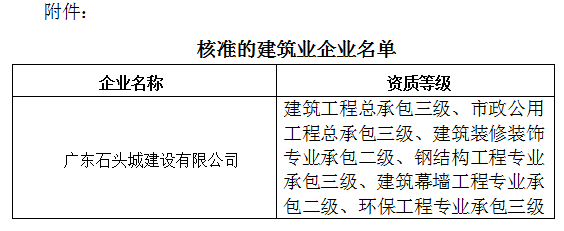 根據(jù)《中華人民共和國(guó)行政許可法》、《中華人民共和國(guó)建筑法》和有關(guān)建設(shè)工程企業(yè)資質(zhì)管理規(guī)定,現(xiàn)將經(jīng)我局審查核準(zhǔn)的建筑業(yè)企業(yè)名單予以公布(見附件)。
