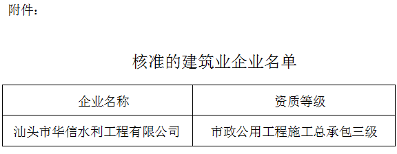 關(guān)于建筑業(yè)企業(yè)資質(zhì)核準(zhǔn)結(jié)果的公告汕住建公告〔2018〕19號(hào)