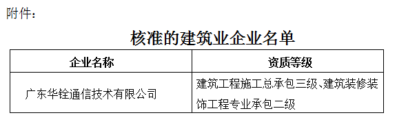 根據(jù)《中華人民共和國行政許可法》、《中華人民共和國建筑法》和有關(guān)建設(shè)工程企業(yè)資質(zhì)管理規(guī)定,現(xiàn)將經(jīng)我局審查核準的建筑業(yè)企業(yè)名單予以公布(見附件)。