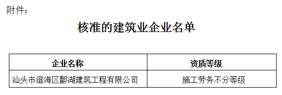 關(guān)于建筑業(yè)企業(yè)資質(zhì)核準(zhǔn)結(jié)果的公告