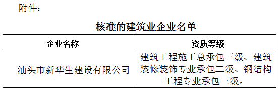 根據(jù)《中華人民共和國行政許可法》、《中華人民共和國建筑法》和有關建設工程企業(yè)資質(zhì)管理規(guī)定,現(xiàn)將經(jīng)我局審查核準的建筑業(yè)企業(yè)名單予以公布(見附件)。