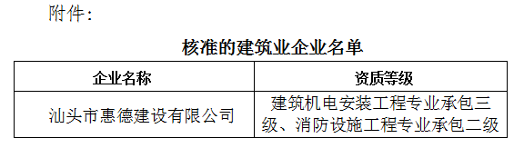 關(guān)于建筑業(yè)企業(yè)資質(zhì)核準(zhǔn)結(jié)果的公告汕住建公告〔2018〕41號(hào)