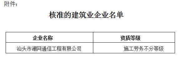 關(guān)于建筑業(yè)企業(yè)資質(zhì)核準(zhǔn)結(jié)果的公告汕住建公告〔2018〕43號(hào)