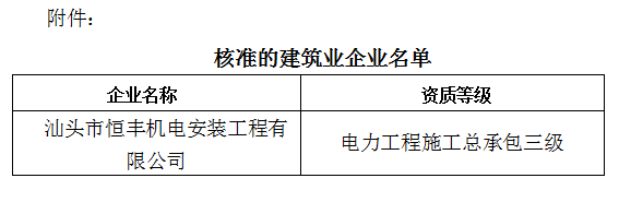 關(guān)于建筑業(yè)企業(yè)資質(zhì)核準(zhǔn)結(jié)果的公告汕住建公告〔2018〕44號(hào)