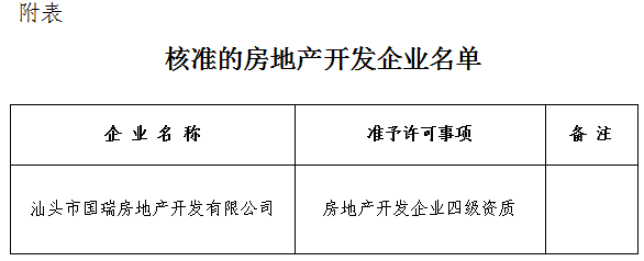 關(guān)于房地產(chǎn)開發(fā)企業(yè)資質(zhì)核準(zhǔn)結(jié)果的公告 汕住建公告〔2018〕45號(hào)
