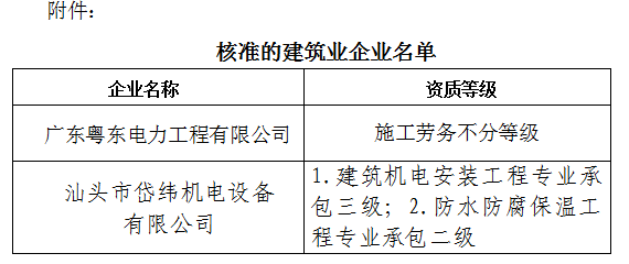 根據(jù)《中華人民共和國行政許可法》、《中華人民共和國建筑法》和有關(guān)建設(shè)工程企業(yè)資質(zhì)管理規(guī)定,現(xiàn)將經(jīng)我局審查核準的建筑業(yè)企業(yè)名單予以公布(見附件)。