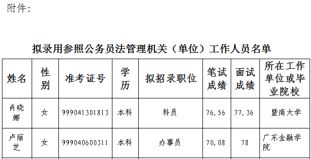 附件:擬錄用參照公務(wù)員法管理機(jī)關(guān)(單位)工作人員名單