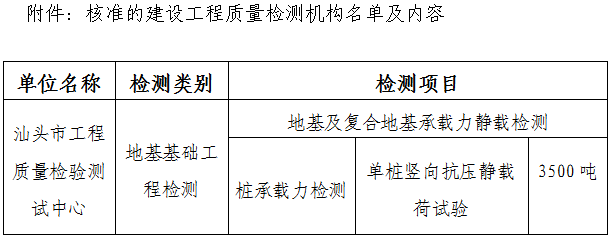 關(guān)于建設(shè)工程質(zhì)量檢測(cè)機(jī)構(gòu)核準(zhǔn)結(jié)果的公告汕住建公告〔2018〕54號(hào)