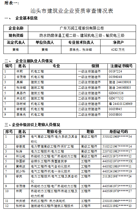 瀏覽次數(shù):4319按照《中華人民共和國(guó)行政許可法》規(guī)定以及《建筑業(yè)企業(yè)資質(zhì)管理規(guī)定》(住房城鄉(xiāng)建設(shè)部第22號(hào)令)、(住房城鄉(xiāng)建設(shè)部關(guān)于印發(fā)《建筑業(yè)企業(yè)資質(zhì)標(biāo)準(zhǔn)》的通知)(建市[2014]159號(hào))的要求,我局對(duì)近期申請(qǐng)建筑業(yè)企業(yè)資質(zhì)的廣東萬(wàn)潤(rùn)工程股份有限公司申報(bào)材料進(jìn)行了審查,現(xiàn)將審查意見(jiàn)予以公示(見(jiàn)附表) 。
