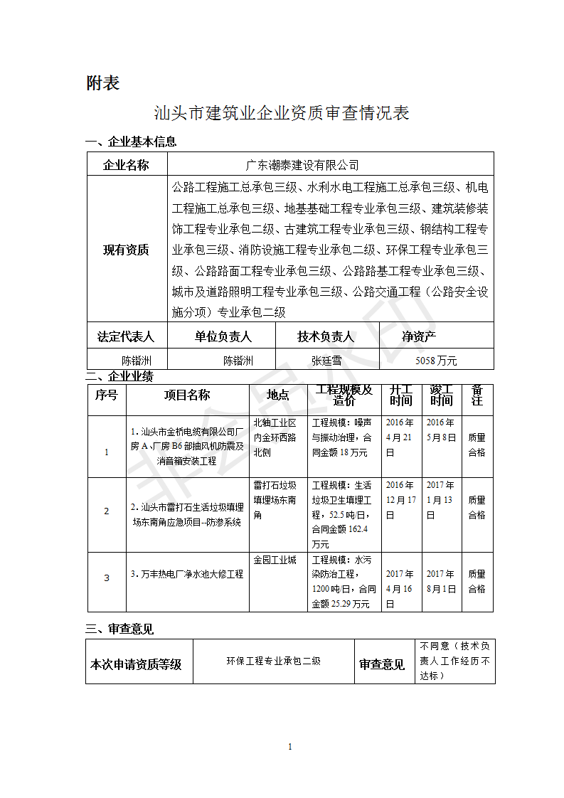 瀏覽次數(shù):4454按照《中華人民共和國行政許可法》規(guī)定以及《建筑業(yè)企業(yè)資質(zhì)管理規(guī)定》(住房城鄉(xiāng)建設部第22號令)、(住房城鄉(xiāng)建設部關于印發(fā)《建筑業(yè)企業(yè)資質(zhì)標準》的通知)(建市[2014]159號)的要求,我局對近期申請建筑業(yè)企業(yè)資質(zhì)的廣東潮泰建設有限公司的申報材料進行了審查,現(xiàn)將審查意見予以公示 (見附表) 。