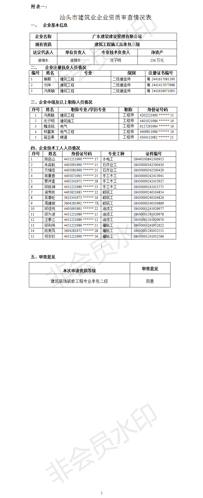 瀏覽次數:4821按照《中華人民共和國行政許可法》規(guī)定以及《建筑業(yè)企業(yè)資質管理規(guī)定》(住房城鄉(xiāng)建設部第22號令)、(住房城鄉(xiāng)建設部關于印發(fā)《建筑業(yè)企業(yè)資質標準》的通知)(建市[2014]159號)的要求,我局對近期申請建筑業(yè)企業(yè)資質的廣東建榮建設管理有限公司申報材料進行了審查,現將審查意見予以公示(見附表) 。