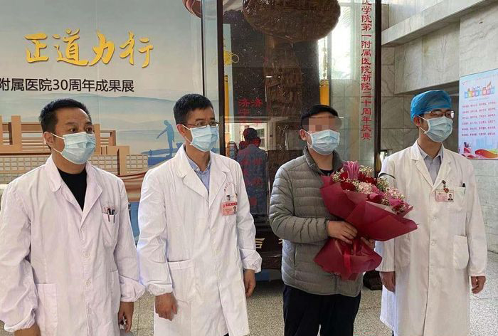 彭先生今年31歲,1月19日至1月23日曾至武漢探親,1月31日新型冠狀病毒核酸檢測陽性,被確診為新型冠狀病毒肺炎(普通型)患者。入院后給予吸氧、抗病毒、營養(yǎng)支持等,病情逐漸好轉(zhuǎn)。2月1日至今體溫正常,呼吸道癥狀明顯好轉(zhuǎn),2月9日復(fù)查胸部CT提示雙肺多發(fā)大小不等斑片狀磨玻璃灶較前進一步吸收減少、變淡,2月9日、11日新型冠狀病毒核酸檢測均為陰性,符合國家衛(wèi)健委《關(guān)于新型冠狀病毒感染的肺炎診療方案(試行第五版)》出院標準,2月12日治愈出院。
