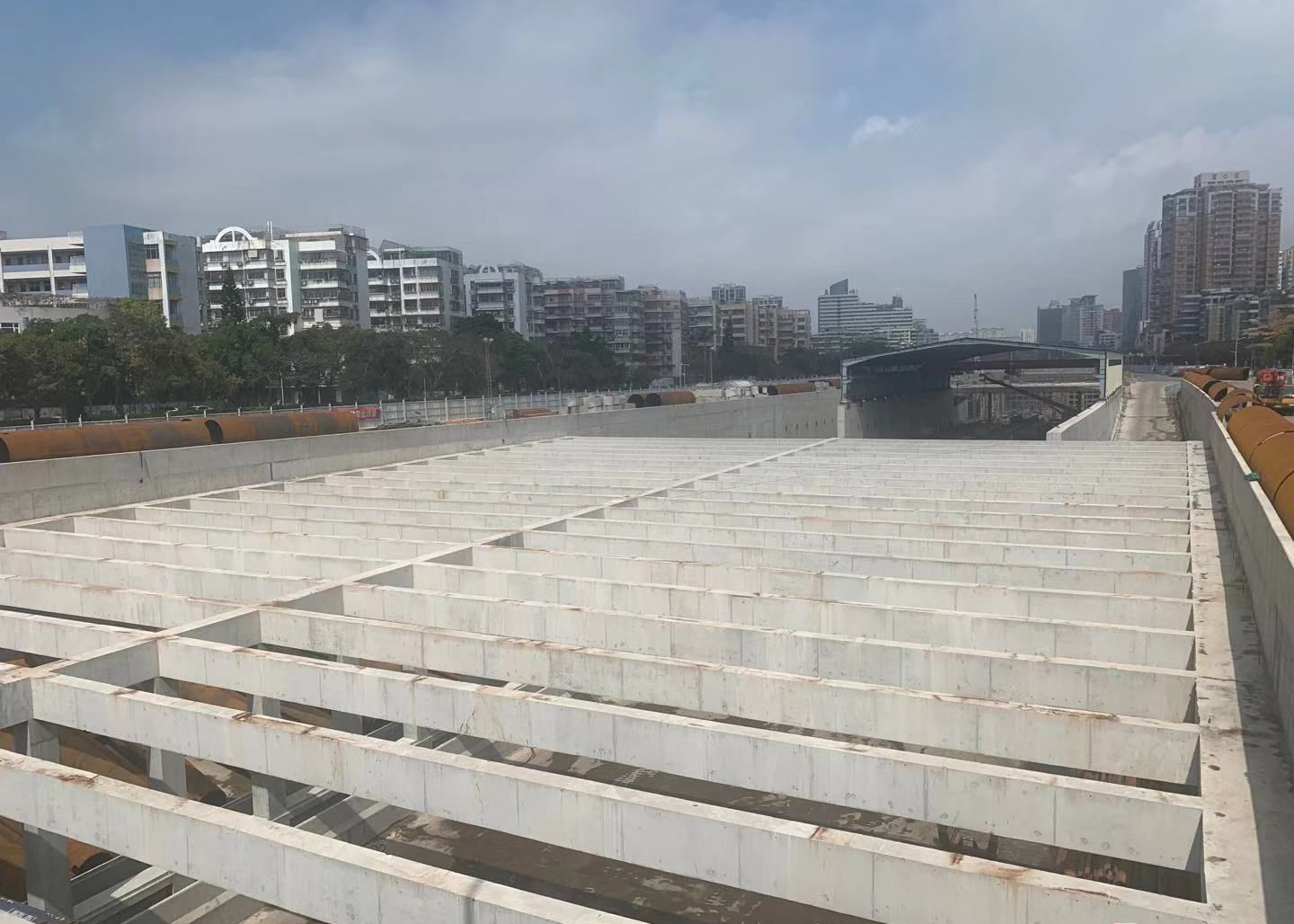 汕頭海灣隧道北岸部分里程段總長1790m,分為路基段、主線敞開段、長平暗埋段、中間敞開段多個施工段,主要采用明挖施工。受前期施工場地限制,北岸明挖隧道段目前已成為了實現(xiàn)整體通車的關(guān)鍵作業(yè)區(qū)。為盡快實現(xiàn)海灣隧道整體通車運行,市政府及相關(guān)部門多次深入現(xiàn)場調(diào)研了解、溝通協(xié)調(diào)、督察督辦。建設(shè)單位與施工單位經(jīng)過幾十次的施工方案優(yōu)化比選,報請市政府后,最終確定對中山東路現(xiàn)有交通進行倒改,為龍湖溝段明挖隧道施工創(chuàng)造條件,力爭在23個月內(nèi)完成剩余工程,于2021年9月30日實現(xiàn)主線隧道試運營。