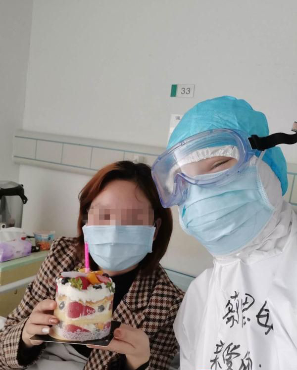 在采訪中,記者還了解到了一件暖心事。24日早上,感染性疾病科蔡思敏主管護(hù)師刷到了楊女士的朋友圈。原來,當(dāng)天是楊女士的生日,并且在朋友圈寫下了“今天是我生日,希望快點出院吧”的生日愿望。由于楊女士需要隔離住院,家人和朋友都無法陪伴在其身邊。