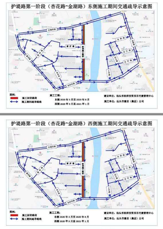 注意!護堤路分段改造 杏花至金湖路段明起開始實施半封閉施工!