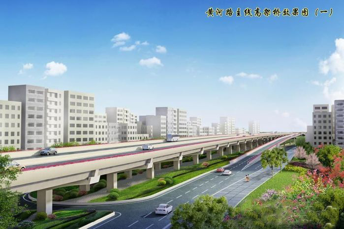 據(jù)了解,黃河路項目工程起點接黃河路與泰山路互通立交,終點與金鳳高架橋銜接,道路總長4.2公里,設(shè)置一座長約2.1公里的跨線橋和446米長的東廈隧道。