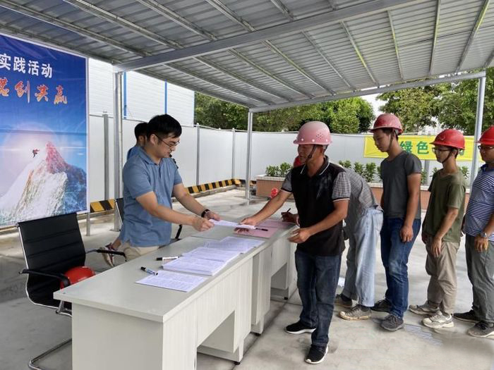 工作人員向建筑企業(yè)一線職工解讀《保障農(nóng)民工工資支付條例》有關(guān)規(guī)定,并分發(fā)相關(guān)宣傳冊,確保有關(guān)職工能切實(shí)有效地運(yùn)用法律維護(hù)自身權(quán)益。