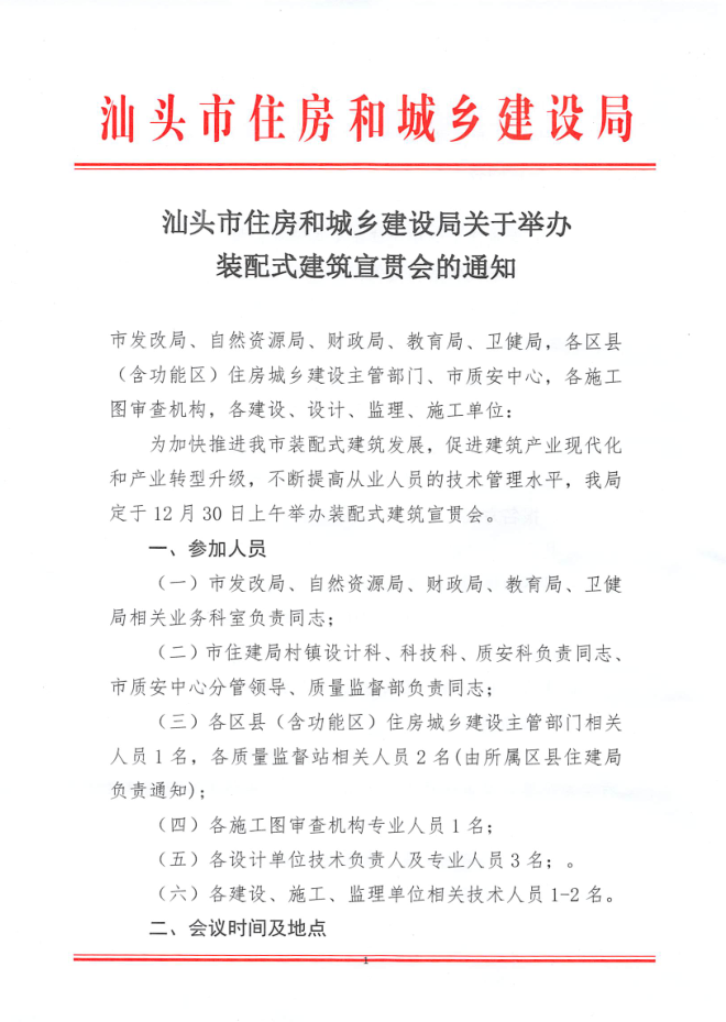 汕頭市住房和城鄉(xiāng)建設(shè)局關(guān)于舉辦裝配式建筑宣貫會(huì)的通知
